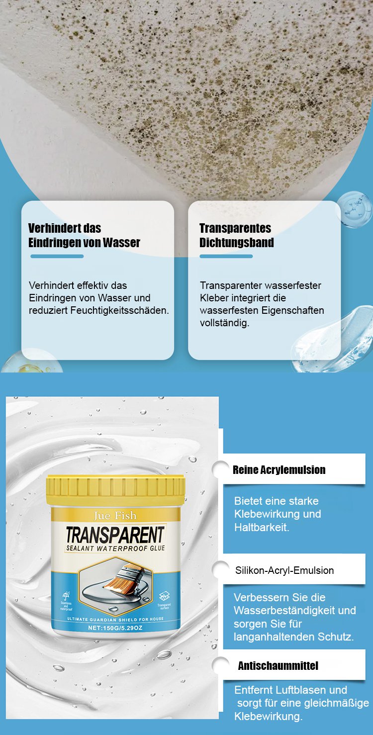 Transparenter unsichtbarer Dichtstoff für leckage- und wasserdichte Versiegelung.